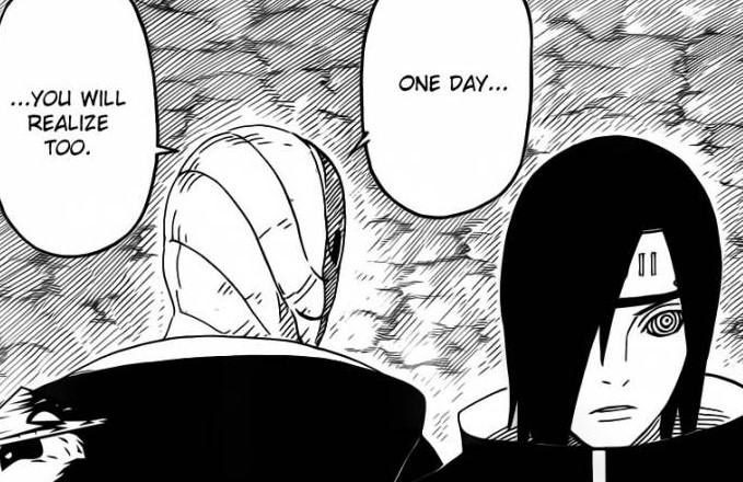 We cannot avoid this fight. We have to fight. But what shape will our fight take? Naruto’s fight is not against a person, a villain—as much as it is against hatred at large. His fight, rightly, starts inside himself, as he comes to terms with the hatred and resentment in his own heart. That is the hardest fight there is. And yet, how do you take on the hatred of an entire nation, an entire community, the human civilization? Can it be done? Madara Uchiha dreams of an ideal world. His project Tsuki no Me (The Eye of the Moon) is his own solution to this philosophical problem of the human condition. He wants to trap the entire world in a dream state in which people lose their egos, sense of self, free will and are united together under one will, his own. Yet, this peace would be an illusion at best. Even if human civilization could start from scratch and be a tabula rasa, due to an in-built flaw in our design, we would inevitably find our way back to all the hurt and misery we suffer from today.